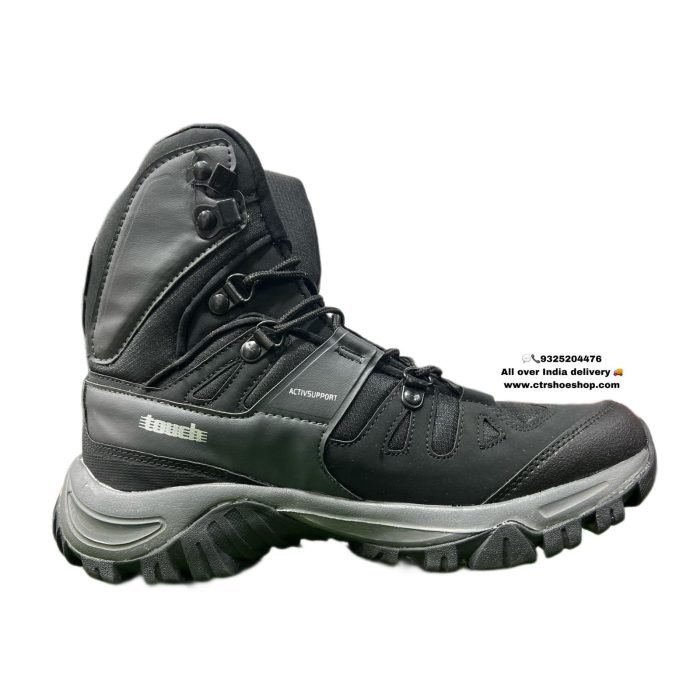 Lakhani Touch High Ankle Light Weight Trekking Shoes | Anti skid water resistant ( MARCOS ) Black